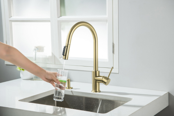 Nie trzeba otwierać (odchylać) rączkę główną. Wystarczy nacisnąć drugi przycisk na wyciąganej wylewce (końcówce) aby uruchomić wodę filtrowaną.