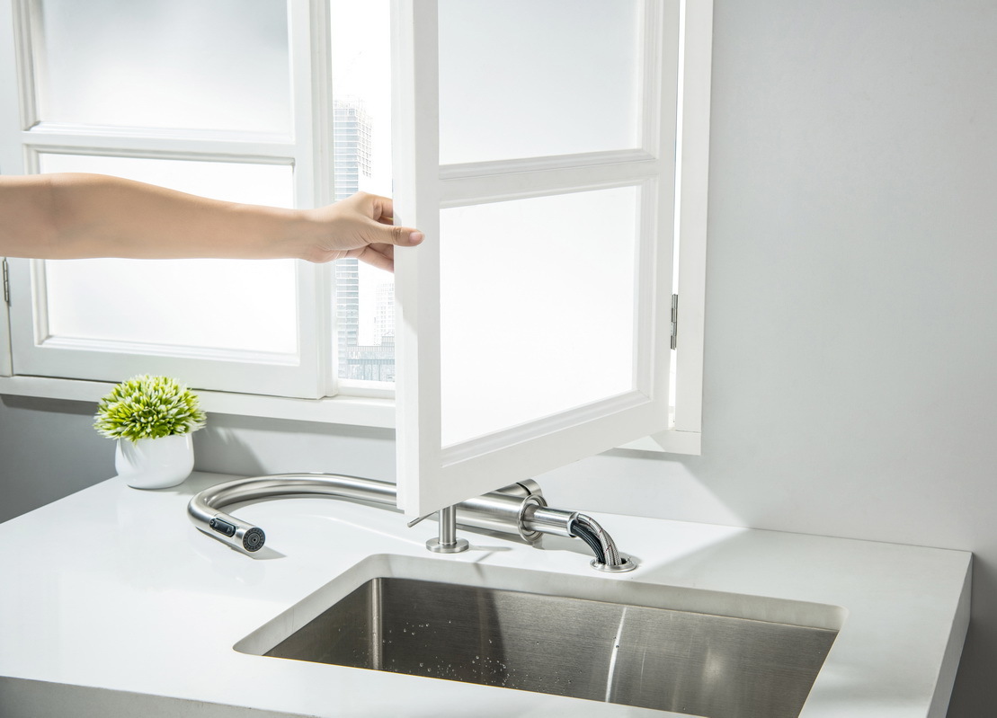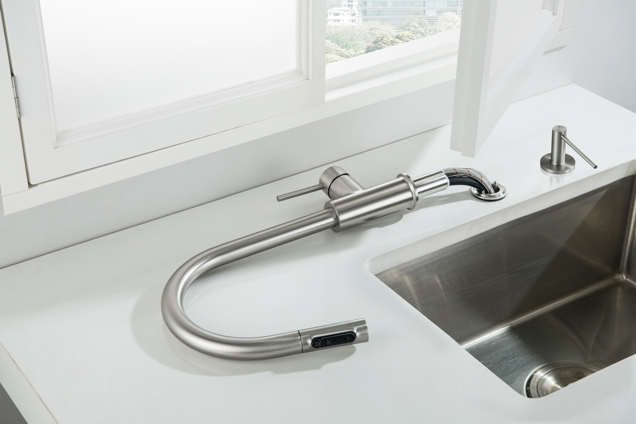 nowy model DIANA - bateria z podłączeniem do filtrów oraz funkcją podokienna (WINDOW), z wyciąganą wylewką z przełącznikiem strumienia wody.