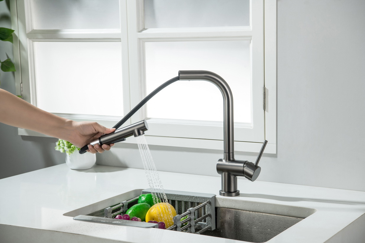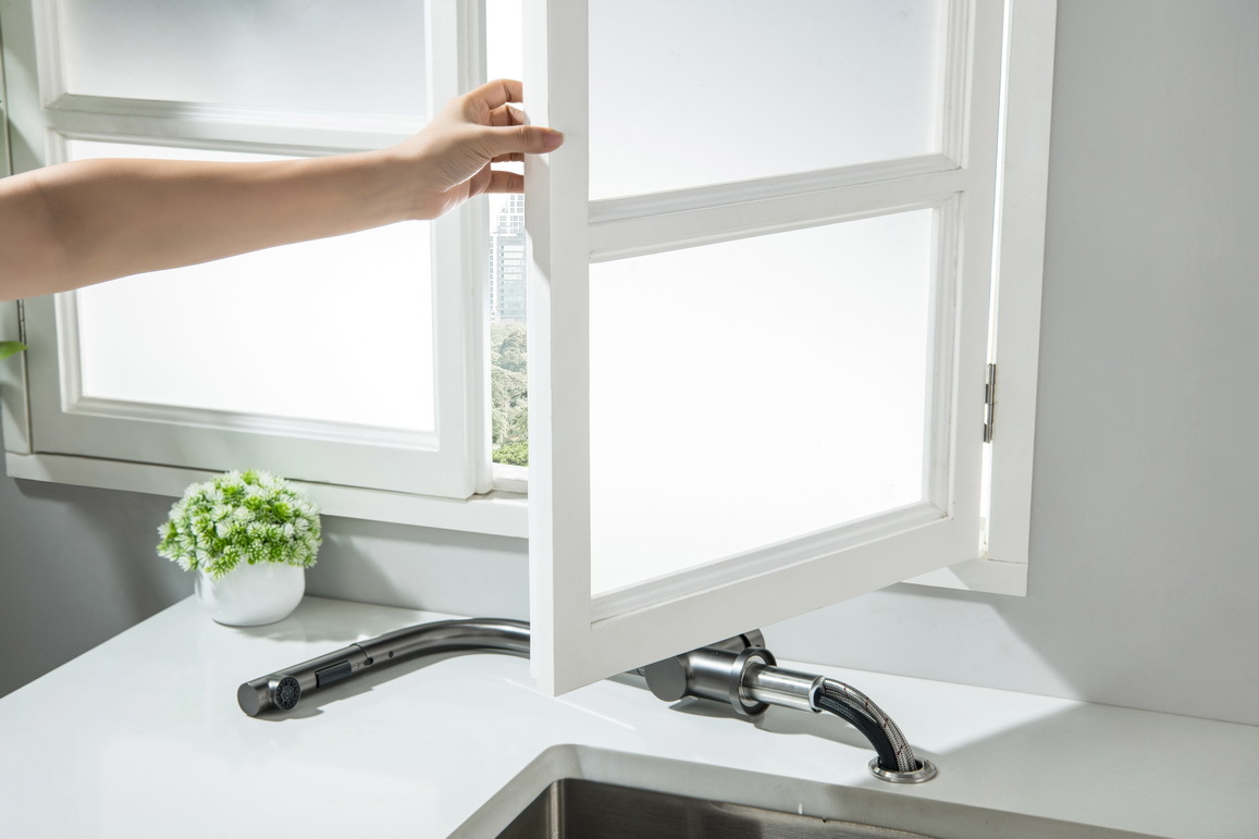 • kolejny model baterii podokiennej z wyciąganą wylewką z przełącznikiem strumienia wody
