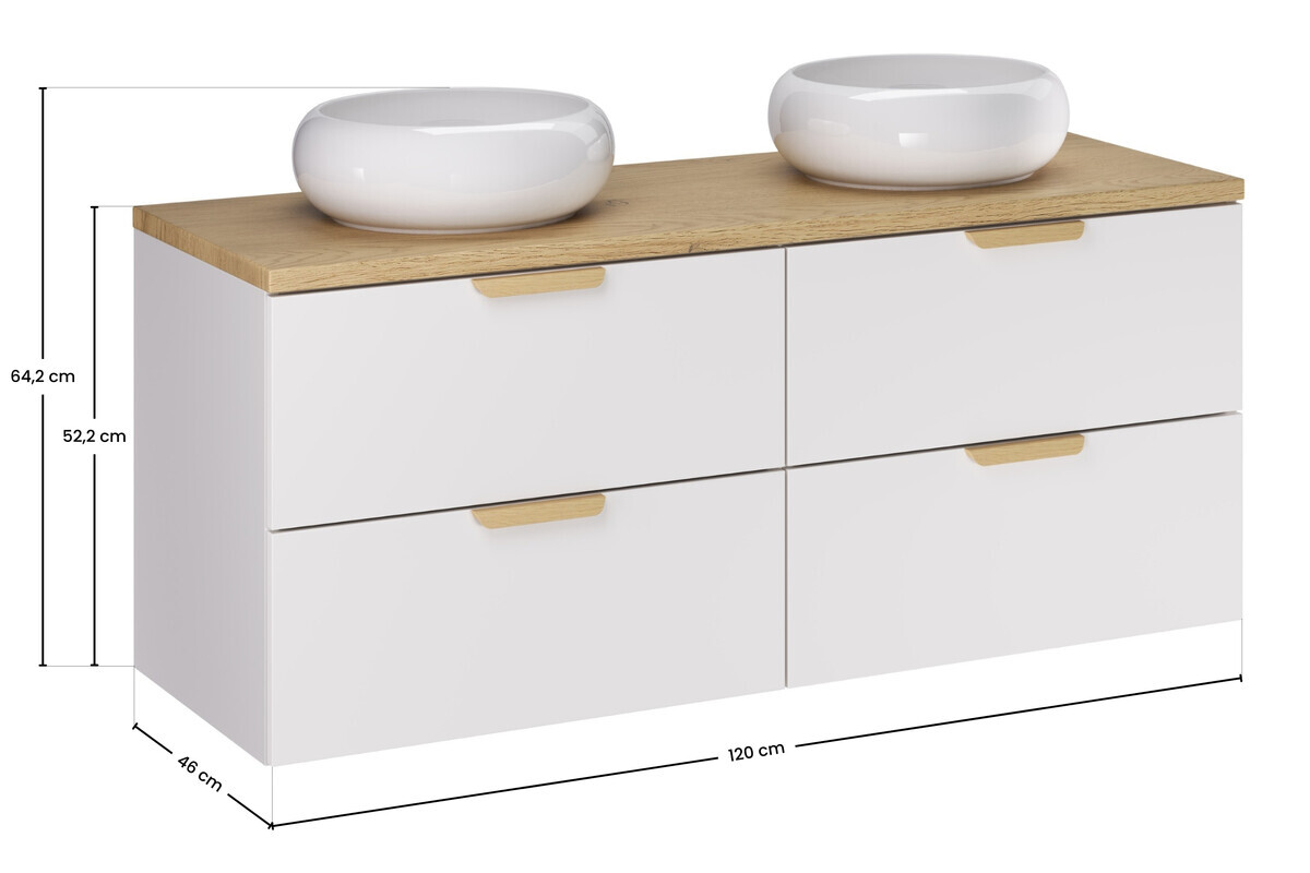 Comad Aster White zestaw meblowy 120cm z blatem i 2 umywalkami nablatowymi Wiki