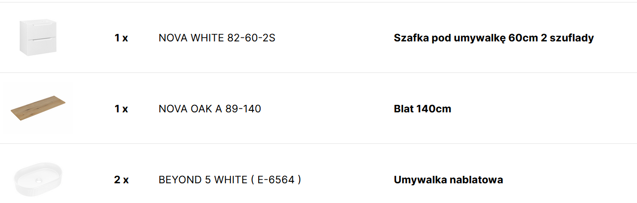Zestaw z umywalką tak