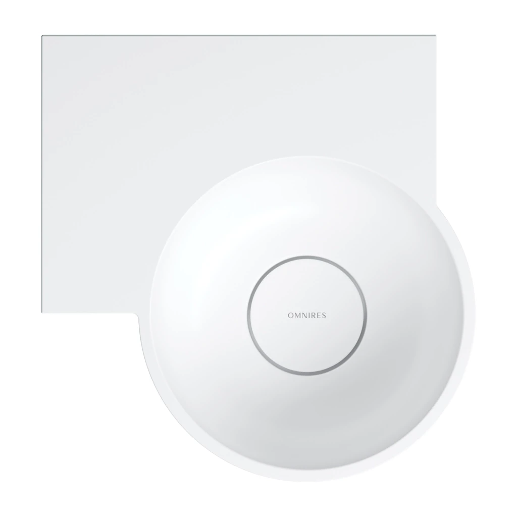 Umywalka z kolekcji OMNIRES OVO charakteryzuje się minimalistyczną, wyrazistą formą o doskonałych proporcjach. Powstały z zabawy geometrią kształt tworzą okrągła misa połączona z prostokątną, funkcjonalną półką - idealnym miejscem do montażu baterii, a także do odstawienia kosmetyków, czy innych niezbędnych akcesoriów. Harmonijnie wyprofilowane ścianki zostały wykończone płaskim, podkreślającym formę rantem, a idealnie dopasowana maskownica odpływu gwarantuje najwyższą estetykę. Od spodu umywalki zaprojektowano dyskretne, fabrycznie podcienione punkty, które wskazują miejsca na wykonanie otworów pod baterię lub dozownik, umożliwiając elastyczne dopasowanie armatury do indywidualnych potrzeb.