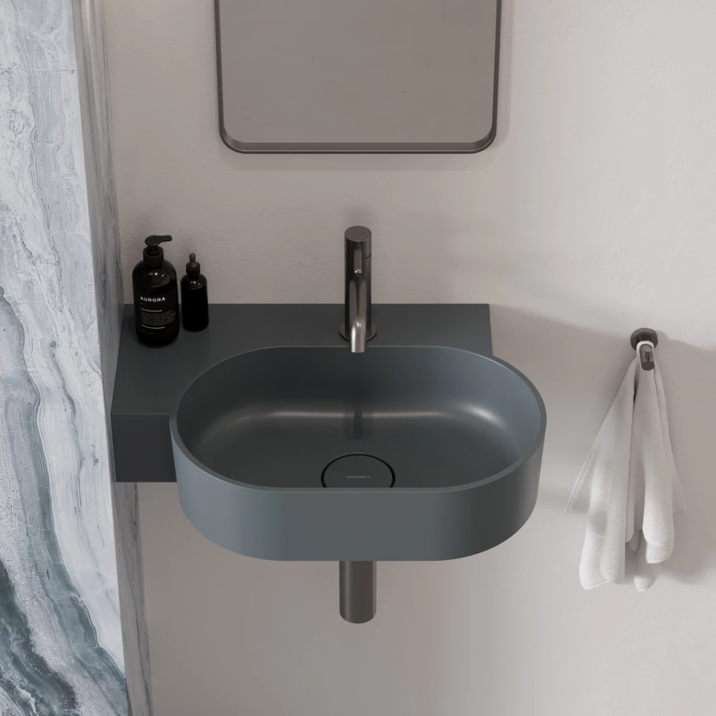Omnires OVO M+ umywalka nablatowa/wisząca - lewa 55 x 38 cm szary mat