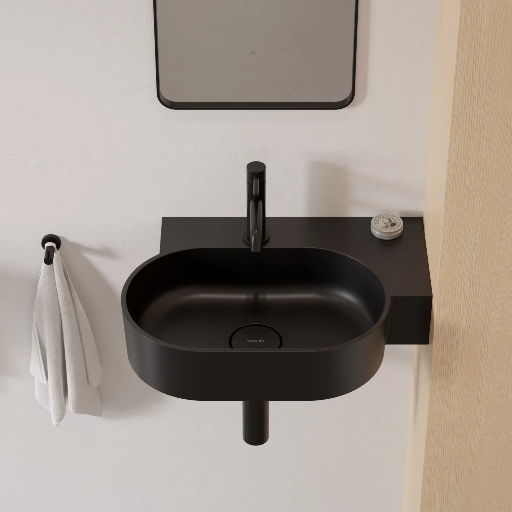 Omnires OVO M+ umywalka nablatowa/wisząca - prawa 55 x 38 cm czarny mat