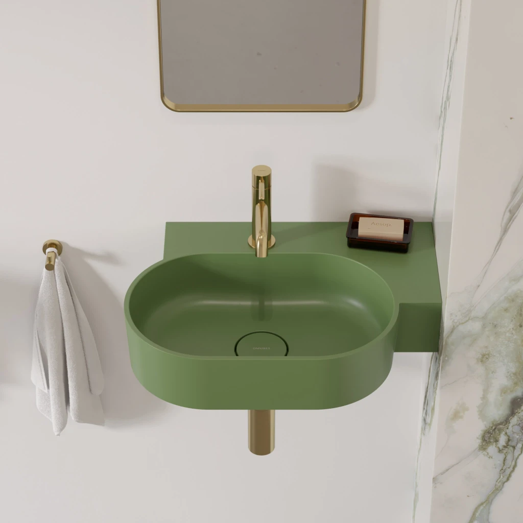 Omnires OVO M+ umywalka nablatowa/wisząca - prawa 55 x 38 cm oliwkowy mat