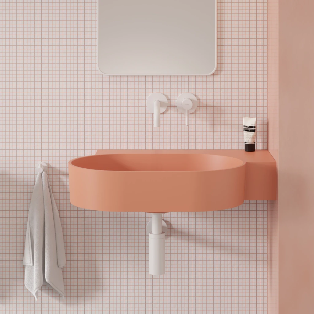 Starannie dopracowana forma umywalki, z perfekcyjnie wykończonymi bokami, zapewnia swobodę montażu i doskonały wygląd w każdej wersji. Zawieszona na ścianie lub w narożniku zachwyca nowoczesną lekkością, a ustawiona na blacie podkreśla wyrazistość i unikalny styl wnętrza. Jej kompaktowe gabaryty czynią ją doskonałym wyborem również do pomieszczeń o ograniczonej powierzchni.
