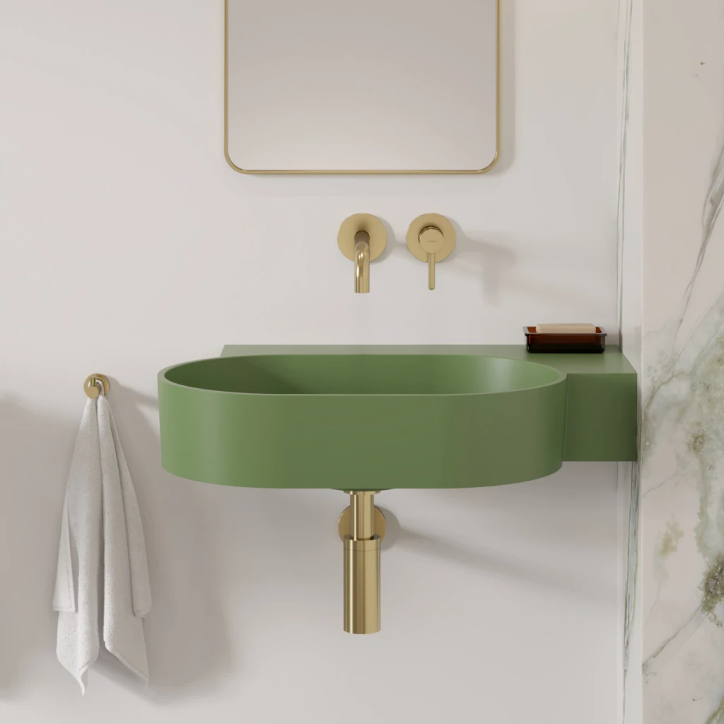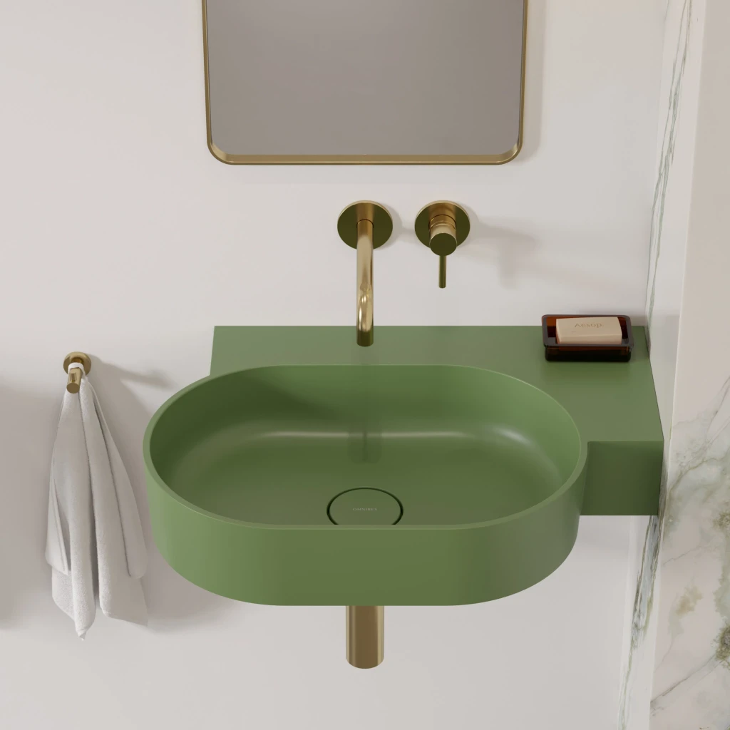 Omnires OVO M+ umywalka nablatowa/wisząca - prawa, 64 x 44 cm oliwkowy mat
