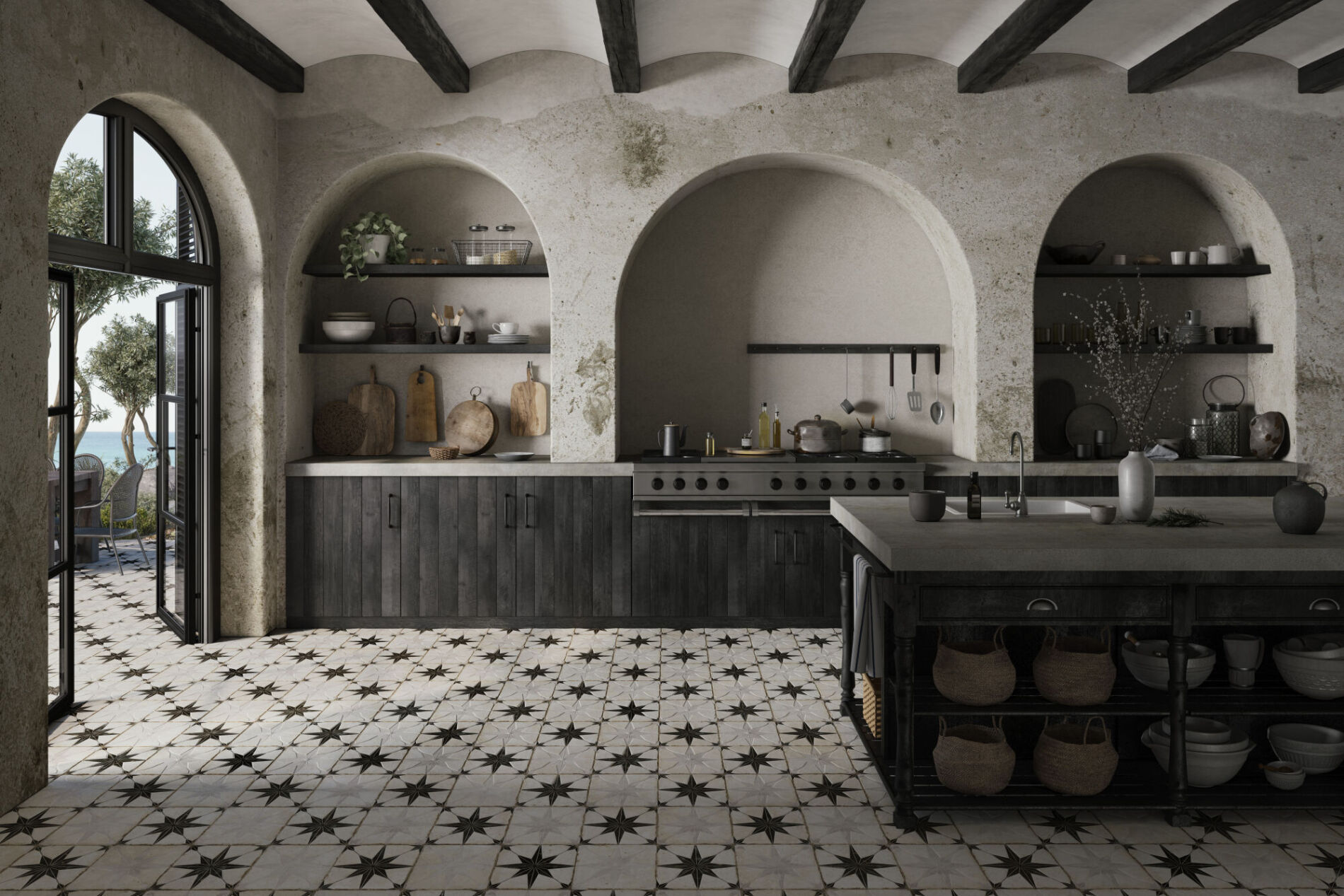 Dzięki niskiemu reliefowi i technologii Layer Tech, jej elementy w kolorach czarnym, białym, szałwiowym i niebieskim tworzą kapryśne błyski, tworząc unikalną atmosferę. Odpowiednia do wnętrz i na zewnątrz, do podłóg i ścian, jest doskonałą opcją, aby dodać przestrzeniom charakteru i osobistego stylu.