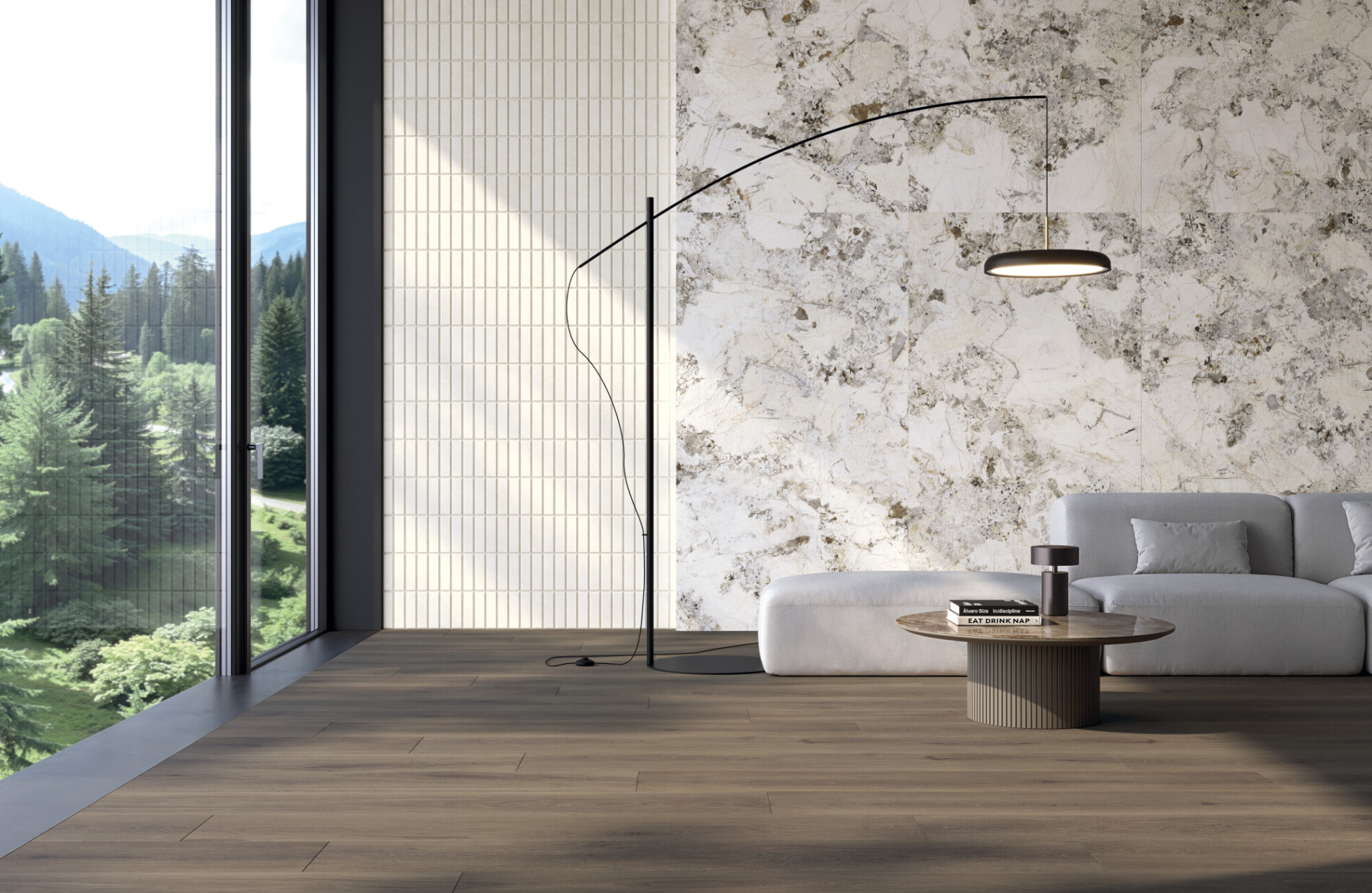 Dostępna w rozmiarach 100x275 cm Premium Polished Shimmer i Shaped, 100x180 cm Shaped, 100x100 cm Shaped i Antislip,120x120cm Natural, 75,5x151 cm i 60x120 cm Natural i Polished, oraz w płytkach ściennych 33,3x100 cm Shaped, uzupełnionych dekoracyjną płytką Deeptech.