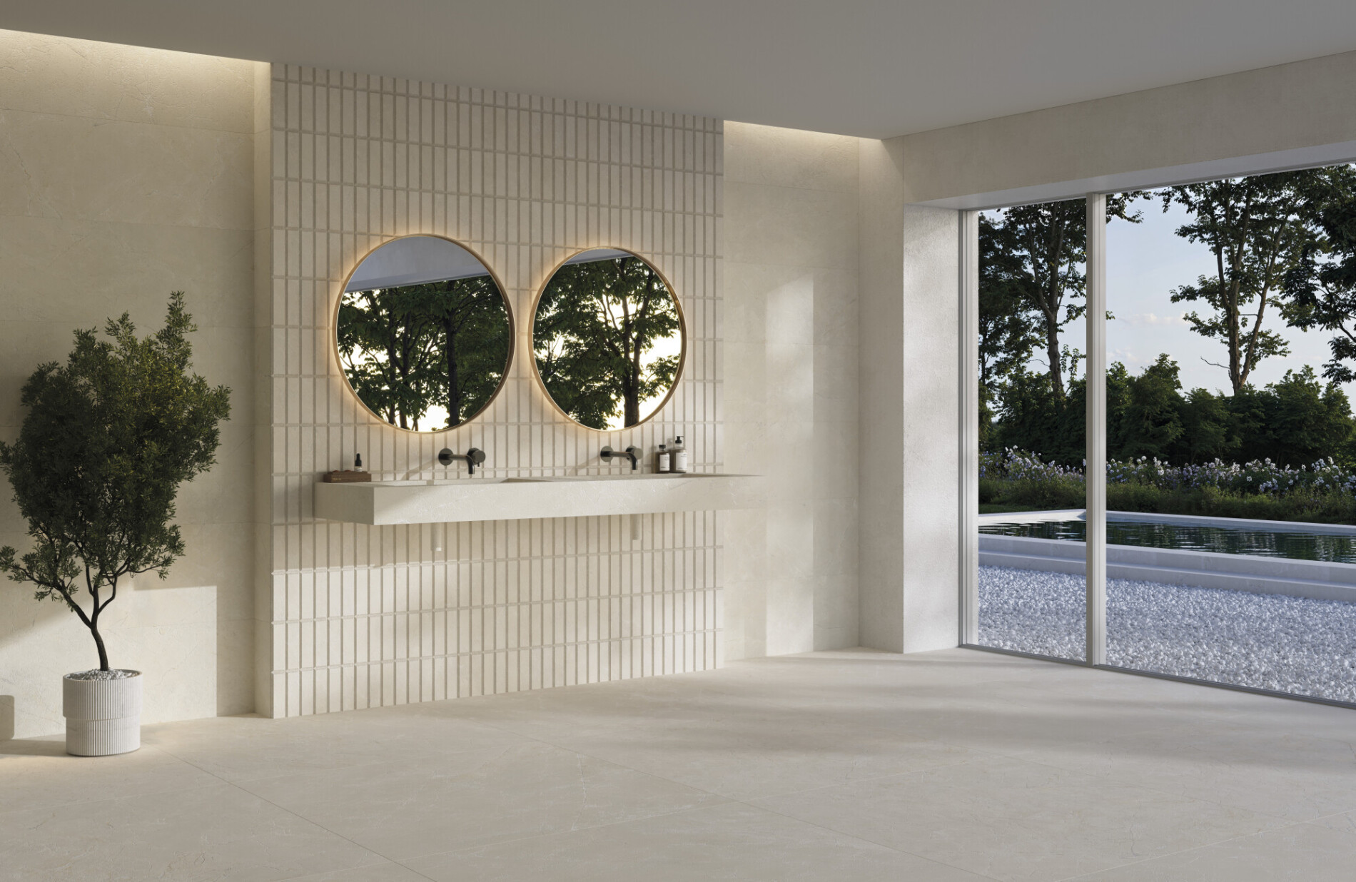 Odkryj kolekcję EDEN, inspirowaną majestatem marmuru cesarskiego i wzbogaconą o kamienne wykończenie, które nadaje jej bardziej współczesny i innowacyjny charakter. W ciepłych odcieniach beżu i kremu przeplata się gęsta sieć bogatych białych żył, tworząc poczucie elegancji i jasności. Każdy element tej kolekcji przekształca dowolną przestrzeń w oazę wyrafinowania i spokoju, przywołując naturalne piękno.