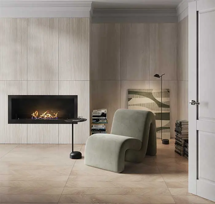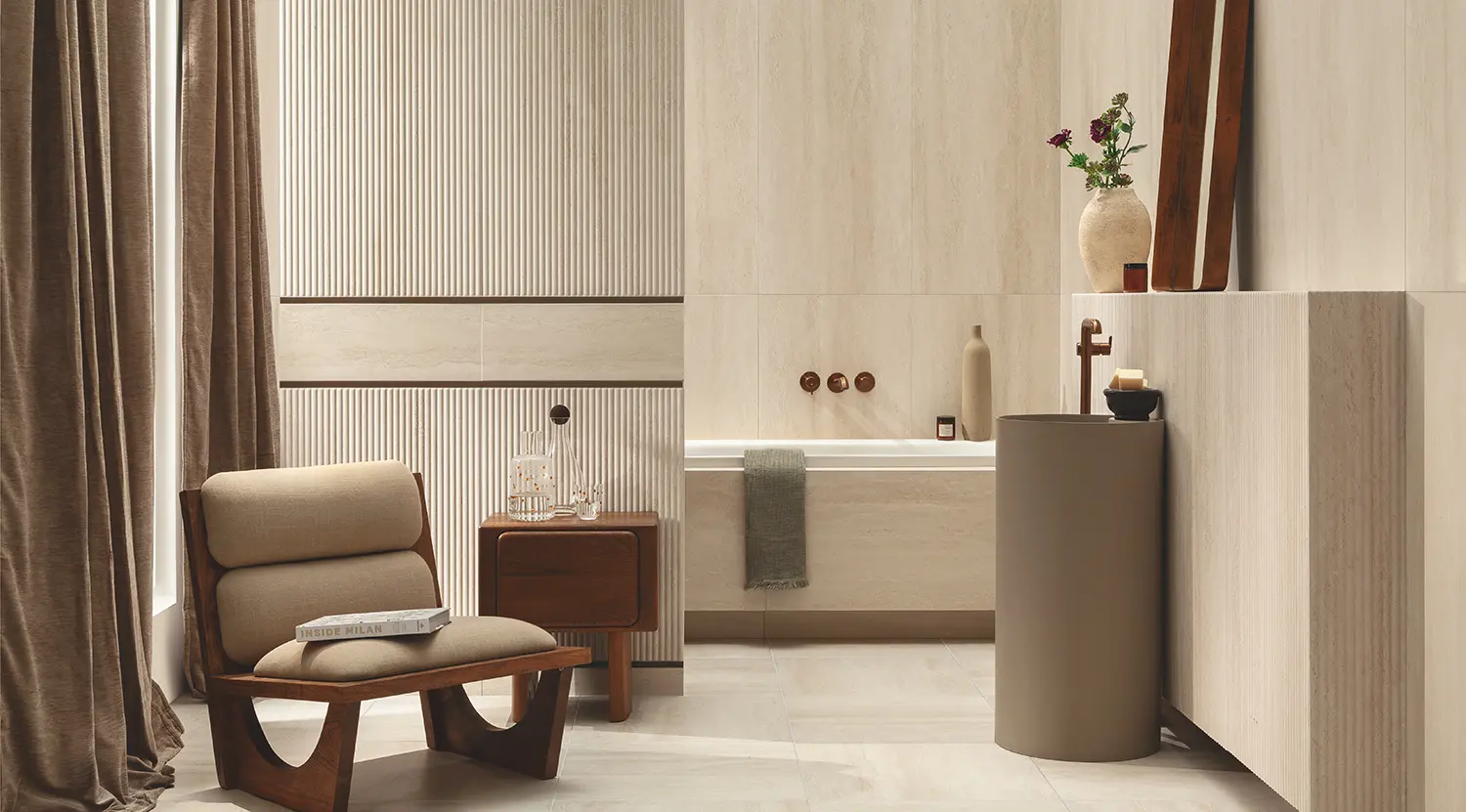 Kolekcja Echo od Tubądzin to płytki ścienne inspirowane naturalnym trawertynem, zaprojektowane w formacie 120×60 cm. Dzięki któremu uzyskasz nowoczesną powierzchnię z minimalną liczbą fug. Płytki z kolekcji Echo wykonano w nowoczesnej technologii, która gwarantuje wysoką wytrzymałość i jednocześnie pozwala na precyzyjne odwzorowanie struktury kamienia. Możesz wykorzystać je zarówno w kuchni i łazience, jak i w salonie, tworząc dekoracyjną ścianę.